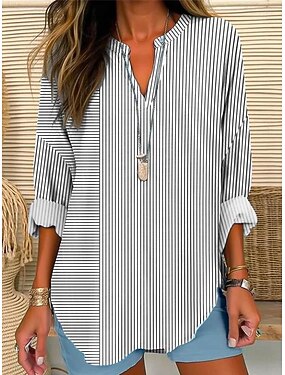 Женская рубашка V-образный вырез классическая блузка на пуговицах графический полосатый стильный пляж рубашка с коротким рукавом воротник обычные топы повседневные кнопки принт розовый голубой