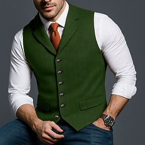 Муж. Жилет Отпуск Повседневные Свадебные прием Свидание Мода На каждый день Весна Осень Пуговицы Карман Полиэстер Удобный Полотняное плетение Однобортный с 1 пуговицей Лацкан Стандартный