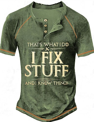 Муж. Рубашка Хенли Футболки Графика Буквы Я исправляю вещи, и я знаю вещи Хенли Одежда 3D печать на открытом воздухе Повседневные С короткими рукавами Пэчворк Кнопка вниз