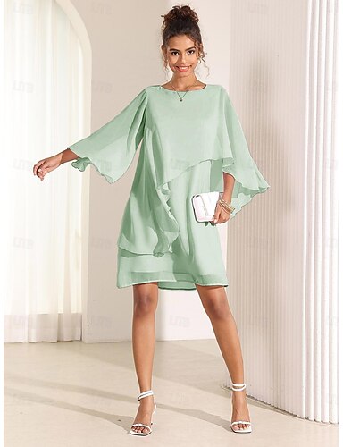 Жен. Платье до колена Шифоновые платья Элегантный стиль Формальная Свадебный гость Коктейльная вечеринка Свободное облегание Рукав 3/4 Вырез под горло Зеленый Лето Весна