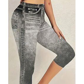 Жен. Брюки Леггинсы Уютные леггинсы Уличный стиль На каждый день Полная длина Средняя талия Цветы Эластичная талия С принтом удобный На открытом воздухе Удобный Отпуск На выход Серый Черный Синий