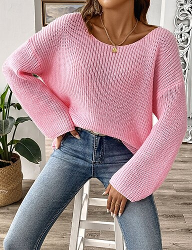 женский свитер пуловер свитер джемпер круглый вырез вязать вязаный весна осень домашний повседневный праздничный повседневный мягкий длинный рукав чистый цвет розовый красный