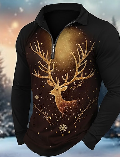 Новогодняя тематика Муж. Каждый Поло Длинный рукав Футболки поло дедушкин воротник На каждый день Праздники На каждый день Фестивальный наряд 3D печать Поло с застежкой-молнией на четверть