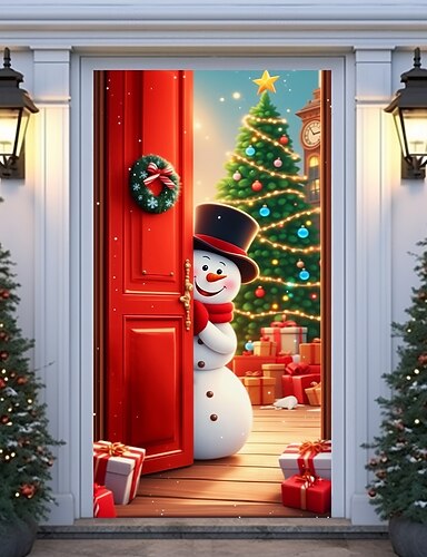 Рождественское прикрытие двери милый снеговик на фоне зимнего леса занавеска для двери на рождественскую вечеринку 2025 года внутреннее и внешнее праздничное украшение входа