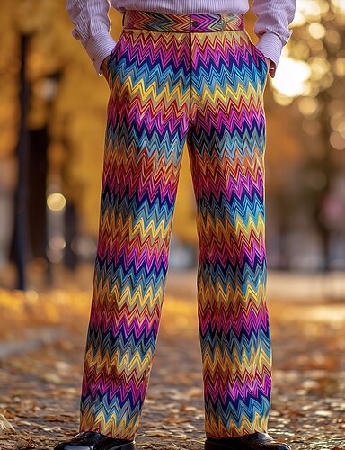 Муж. Радужный Геометрический рисунок Штаны Костюм Костюм Брюки Нормальная Мода Повседневная На каждый день Праздники Уличная одежда Свободные брюки без застежки спереди с боковыми карманами