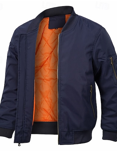 Муж. Куртка бомбер Стеганая куртка Повседневная куртка Отпуск Повседневные Сохраняет тепло Карман Осень Зима Полотняное плетение Мода Классика Воротник-стойка Обычная