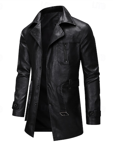 Муж. Пальто Тренч Длинный тренч Отпуск Повседневные Весна Осень Полиуретановая кожа С защитой от ветра Верхняя одежда Одежда Мода Классика Полотняное плетение Карман Лацкан Однобортный крой