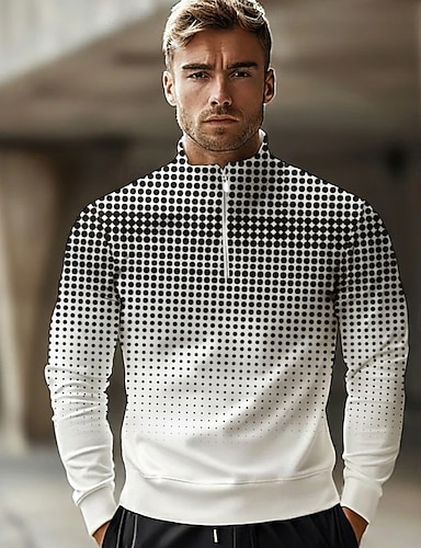 Муж. геометрический Поло Длинный рукав Воротник-стойка Одежда для спорта и отдыха Отпуск Одежда для спорта и отдыха На каждый день 3D печать Весна Осень Зима Черный Синий Зеленый