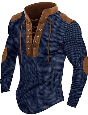 Муж. Вафельная рубашка Henley Футболки Рубашка с длинным рукавом Полотняное плетение Хенли на открытом воздухе Повседневные Длинный рукав кнопка Одежда Мода Оригинальный рисунок Удобный