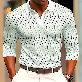 Муж. геометрический Линии Поло Длинный рукав Футболки поло Рубашки с воротником Деловая одежда Бизнес Одежда для спорта и отдыха 3D печать Весна Осень Зима Зеленый