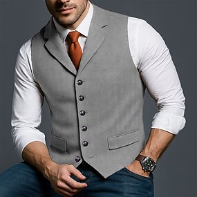 Муж. Жилет Отпуск Для вечеринок Бизнес Винтаж Лето Весна Пуговицы Полиэстер Удобный Полотняное плетение Однобортный с 1 пуговицей V-образный вырез Стандартный Черный Коричневый Светло-серый Жилет