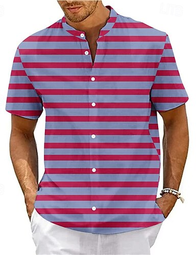 Муж. Рубашка Летняя рубашка Повседневная рубашка Пляжная рубашка Кнопка рубашка Светло-розовый Черный Розовый Красный Насыщенный синий С короткими рукавами В полоску Воротник-стойка Отпуск Гавайский