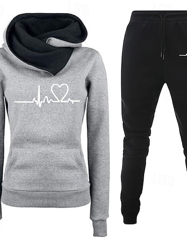 Жен. Свитер-свитшот Спортивные костюмы для отдыха Повседневный комплект свитшотов Вафельная ткань Однотонный Наборы одежды Наступила зима Белый Хаки Пешеходный туризм Разрабатывать Спортивная