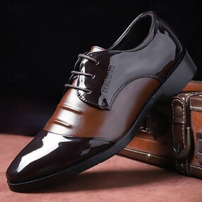Муж. Акцент Для прогулок Английский Свадьба Лакированная кожа Удобный Против скольжения Дышащий Шнуровка Черный и золотой Черно-белый Весна Осень Зима