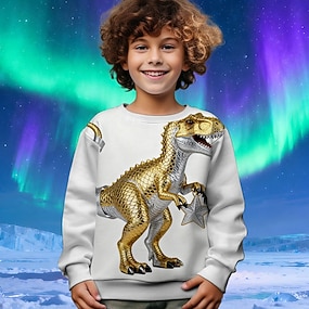 Новогодняя тематика Мальчики 3D Динозавр Толстовка Длинный рукав Весна Осень Мода Классический Дети 4-12 лет Вырез под горло на открытом воздухе Повседневные Стандартный