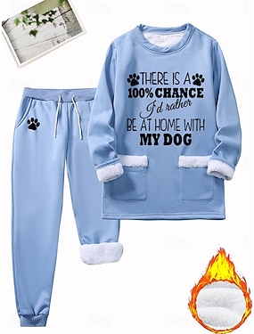 Женский комплект из 2 предметов пушистый пижамный набор длинный рукав топ и брюки текстовый принт комфорт домашняя одежда с завязкой сплошной уютный зима