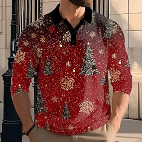 рождество мужская рождественская сцена 3d поло гольф дерево графические принты дом отложной воротник желтый синий фиолетовый зеленый серый 3d принт улица длинный рукав принт на пуговицах одежда мода