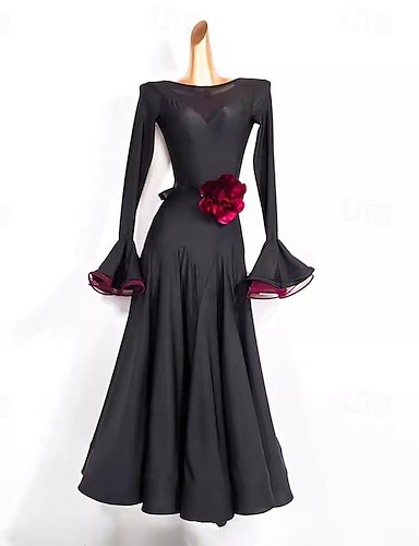 Бальные танцы Платье Планка Жен. Выступление Для вечеринок Длинный рукав Шифон Сетка Спандекс
