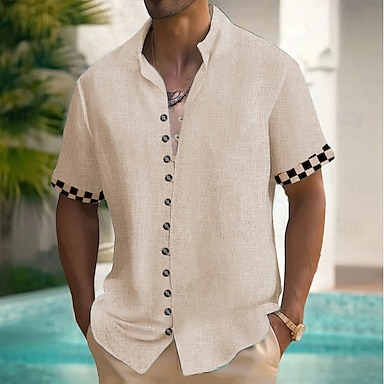 Муж. Манжеты с шахматным узором Рубашка Кнопка рубашка Рубашка с воротником-стойкой Короткие рукава Мода Повседневная Отпуск На каждый день Лето Весна дедушкин воротник Китайский воротник-стойка 3D