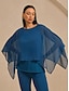 Жен. Блуза Шифон Модал Сплошной/однотонный цвет На каждый день Свидание На выход Вспышка рукава Сетчатый рукав Черный Длинный рукав Элегантный стиль Элегантный и роскошный На каждый день