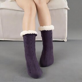женские носки с подкладкой из шерпы, толстые теплые зимние носки-тапочки с нескользящими вставками для дома, кровати или сна