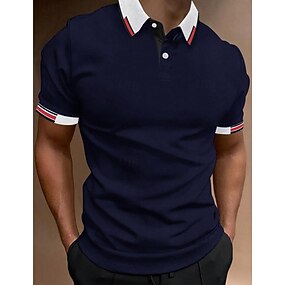 Муж. Гольф Поло С короткими рукавами Короткие рукава Воротничок Лацкан На каждый день Одежда для спорта и отдыха фестиваль Пуговицы Лето Черный Красный Темно синий