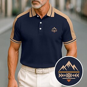 Муж. Контрастных цветов Рубашка для гольфа С короткими рукавами Футболки поло Лацкан На каждый день на открытом воздухе Для улицы Спорт Одежда для отдыха на природе Лето Красный Темно синий Коричневый