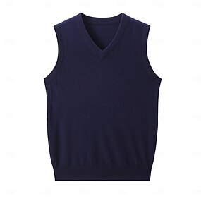 Муж. Жилет Рельефный узор Вязать Обычные топы V-образный Сплошной цвет V-образный вырез Вязаная одежда Повседневные Официальные на открытом воздухе Одежда Весна Осень Черный Темно синий S M L