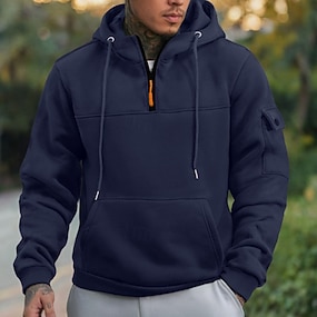 Муж. Толстовка Толстовка с капюшоном на молнии Черный Темно синий Хаки Светло-серый Темно-серый Капюшон Полотняное плетение Карман Четверть молния Для занятий спортом Повседневные Праздники Полиэстер