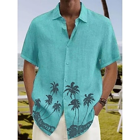 Муж. Кокосовая пальма Алоха Тропические растения Рубашка Гавайская рубашка С короткими рукавами Рубашка Отложной Мода Гавайский Оригинальный рисунок на открытом воздухе Для улицы Повседневные
