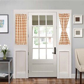 Шторы из французской двери с карманом для штанги Гингем для дверей Оконные занавески Панели для дверей с стеклянными окнами кухонными и террасными дверями для уединения