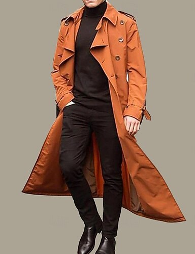 Муж. Пальто Тренч Длинный тренч Отпуск Повседневные Осень Зима Полиэстер Сохраняет тепло С защитой от ветра Верхняя одежда Одежда Мода Классика Полотняное плетение Карман Лацкан Двубортный крой