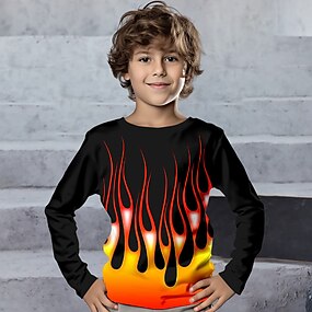 Мальчики 3D Огонь Футболка Рубашка Длинный рукав 3D печать Весна Осень Спорт Мода Уличный стиль Полиэстер Дети 3-12 лет Вырез под горло на открытом воздухе Повседневные Стандартный