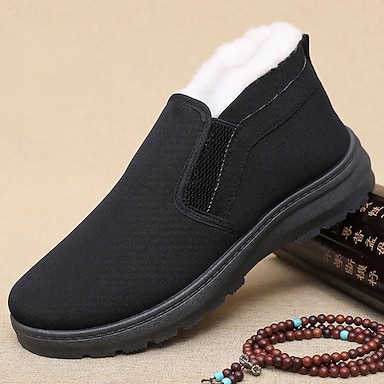 Муж. Ботинки Зимние сапоги Сапоги зимние На флисовой подкладке Для прогулок Классика На каждый день на открытом воздухе Дом Ткань Теплый Удобный Против скольжения Без застежки Черный Коричневый