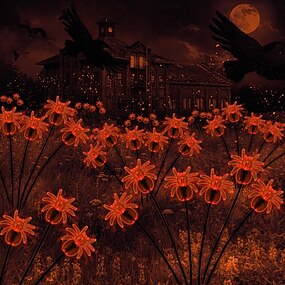 надувные украшения на хэллоуин, уличные светящиеся призраки вырываются из окна с вращающимся огнем, взрывающиеся огни, страшные украшения на хэллоуин, вечеринка на улице, внутренний двор, сад, газон, декор