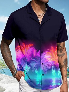 Муж. Градиент Кокосовая пальма Пальма Гавайская рубашка Рубашка Алоха Короткие рукава Рубашка Отложной Гавайский На каждый день Прибегнуть на открытом воздухе Отпуск Для улицы Лиловый S M L