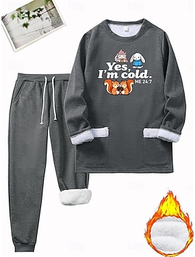 Жен. Теплый Повседневные Комплекты из двух предметов Спортивный костюм Комплекты брюк Длинный рукав Капюшон Графика Животное Полотняное плетение Кулиска С принтом Повседневные