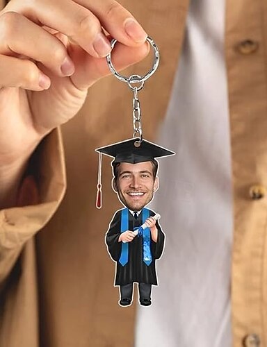 персонализированный брелок для ключей из акрила на выпускной, индивидуальный брелок с фотографией выпускника, забавное лицо, подарок на выпускной для него/нее в 2025 году, брелок на память