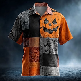 Halloween Муж. Тыква Пэчворк Рубашка Летняя рубашка Кнопка рубашка С короткими рукавами Темный готический стиль Праздники Уличная одежда Лето Весна Отложной 3D печать рубашки с воротником