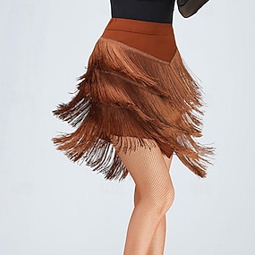 Латино Юбки С кисточками Жен. Выступление На каждый день Средняя талия Эластан