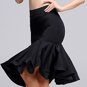 Латино Бальные танцы Юбки Чистый цвет Жен. Выступление Учебный Завышенная талия Полиэстер