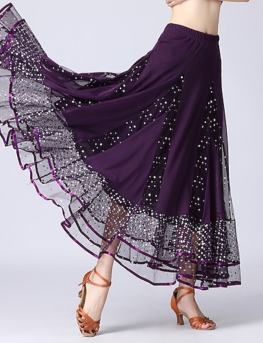 Бальные танцы Юбки Кружева Оборки Планка Жен. Выступление Учебный Шифон "Хрустальный" хлопок