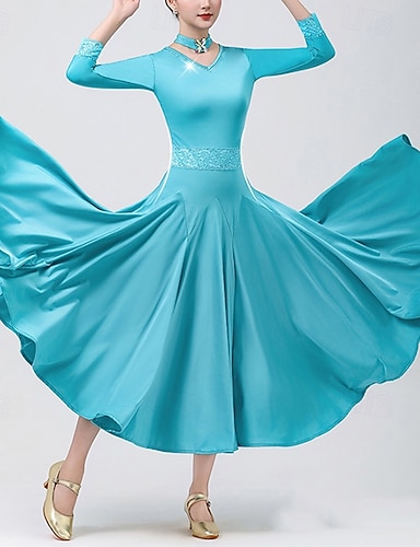 Бальные танцы Платье Стразы Кружева Чистый цвет Жен. Выступление Для вечеринок Длинный рукав Спандекс