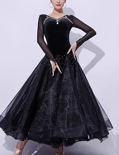 Бальные танцы Платье Планка Стразы Жен. Выступление Для вечеринок Длинный рукав Органза Бархат