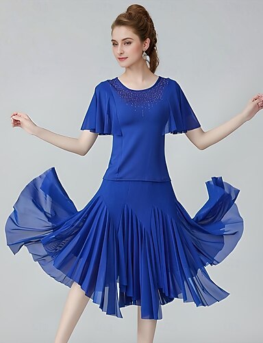 Латино Юбки Каскадные оборки Рюши / сборки Комбинация материалов Жен. Выступление Учебный С короткими рукавами Средняя талия Полиэстер