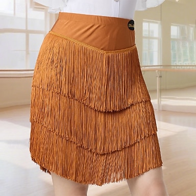 Латино Юбки С кисточками Жен. Выступление На каждый день Средняя талия Эластан