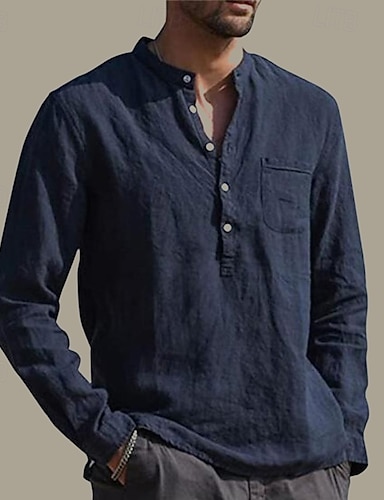 мужские рубашки-поповеры черные темно-синие с длинным рукавом простые хенли отпуск гавайская одежда мода повседневная дышащая