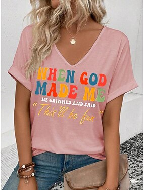 Жен. Футболка Графика Буквы На каждый день С короткими рукавами V-образный вырез Обычные топы Повседневные выходные С принтом Черный Белый Светло-зеленый Розовый Лето GOD
