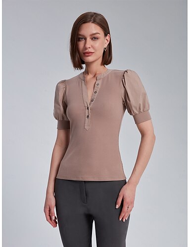 Жен. Сплошной цвет Официальные на открытом воздухе Офис Рукава буффы Черный Розовый Рукава буффы Манжета Кнопка спереди С короткими рукавами Элегантный стиль Мода На каждый день Острый Лето Весна