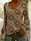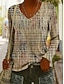 Жен. Футболка Богемия Винтаж На каждый день Длинный рукав V-образный вырез Обычные топы Повседневные Каштановый Розовый Пыльно-синий Хаки Весна Осень